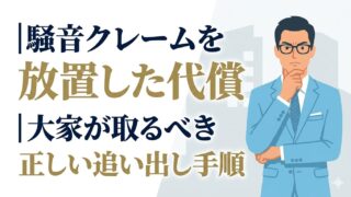 騒音トラブルを放置すると、騒音主ではなく優良入居者から先に退去します。大家が取るべき正しい対処は「記録→書面指示→内容証明→弁護士」の4ステップ。裁判費用や実際の判例も交えて、合法的な追い出し手順を実務家目線で解説します。