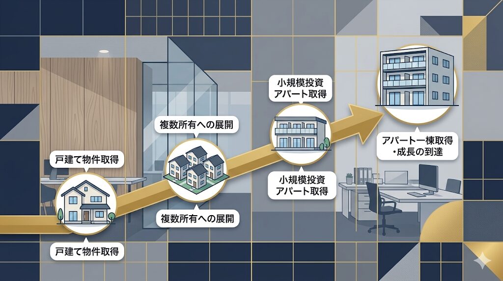 この「ボロ戸建てで経験とキャッシュを積んで一棟物件へ」という流れこそが、高収入サラリーマンがリスクを抑えながら資産を拡大していくための、最も再現性の高いロードマップです。