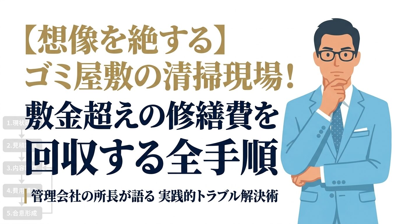 この記事では、ゴミ屋敷の実態費用から、連帯保証人への正しい請求手順、法的手続きまでを一気通貫で解説します。「なってから慌てる」ではなく、「なる前に仕組みを知っておく」ことが、サラリーマン大家として生き残るための最低限の武装です。