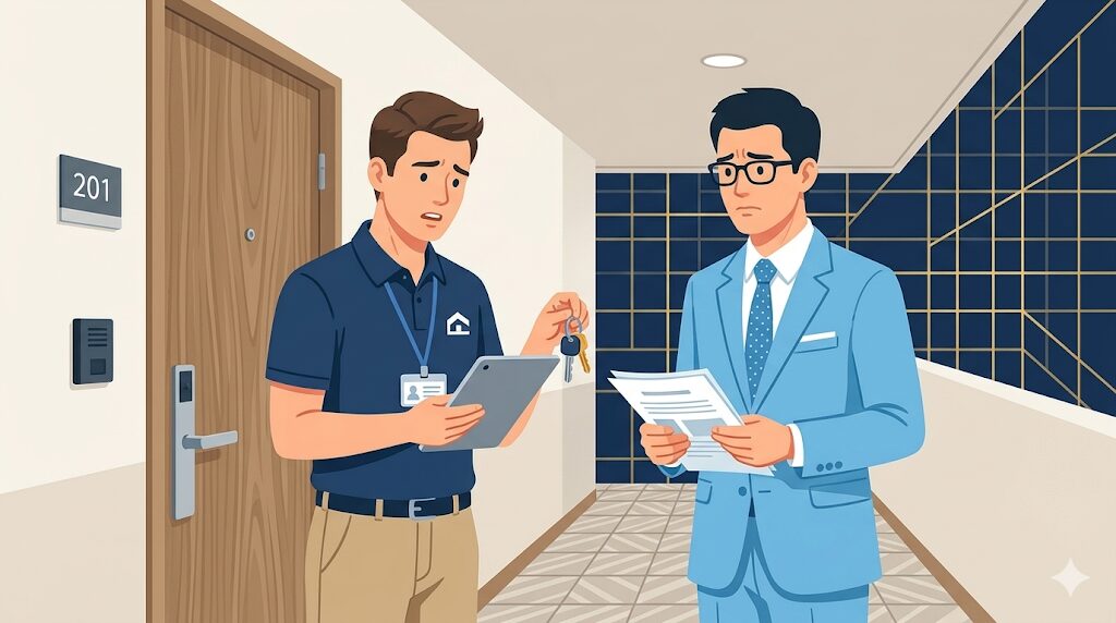- 異常発見時のアクション:大家への即時連絡→書面による入居者への注意喚起→改善確認の報告