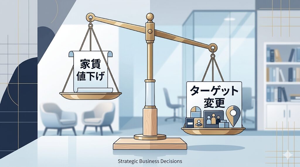 【内部リンク挿入:ID34「家賃下落 限界|家賃を下げても空室が埋まらない時の『底』の見極めと空室対策」】