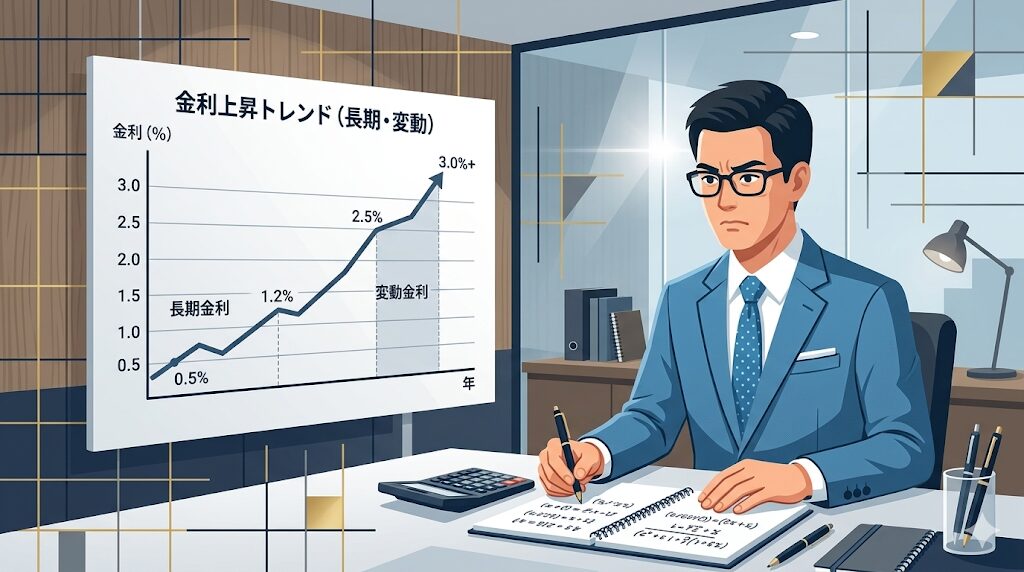 2024年以降、日本銀行の政策変更を受けて変動金利の上昇が現実のものとなっています。「低金利時代に組んだ融資だから大丈夫」という前提は、もはや通用しません。