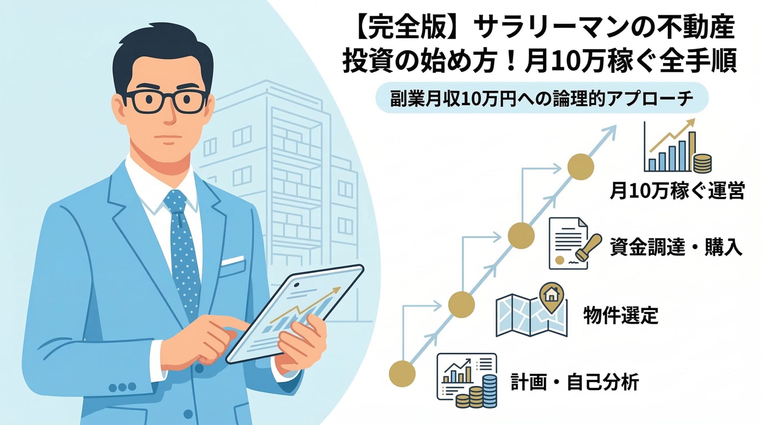 この記事では、そんな私の13年分の経験と失敗を凝縮し、サラリーマンが月10万円のキャッシュフローを得るまでの「5ステップ・ロードマップ」を余すところなく解説します。