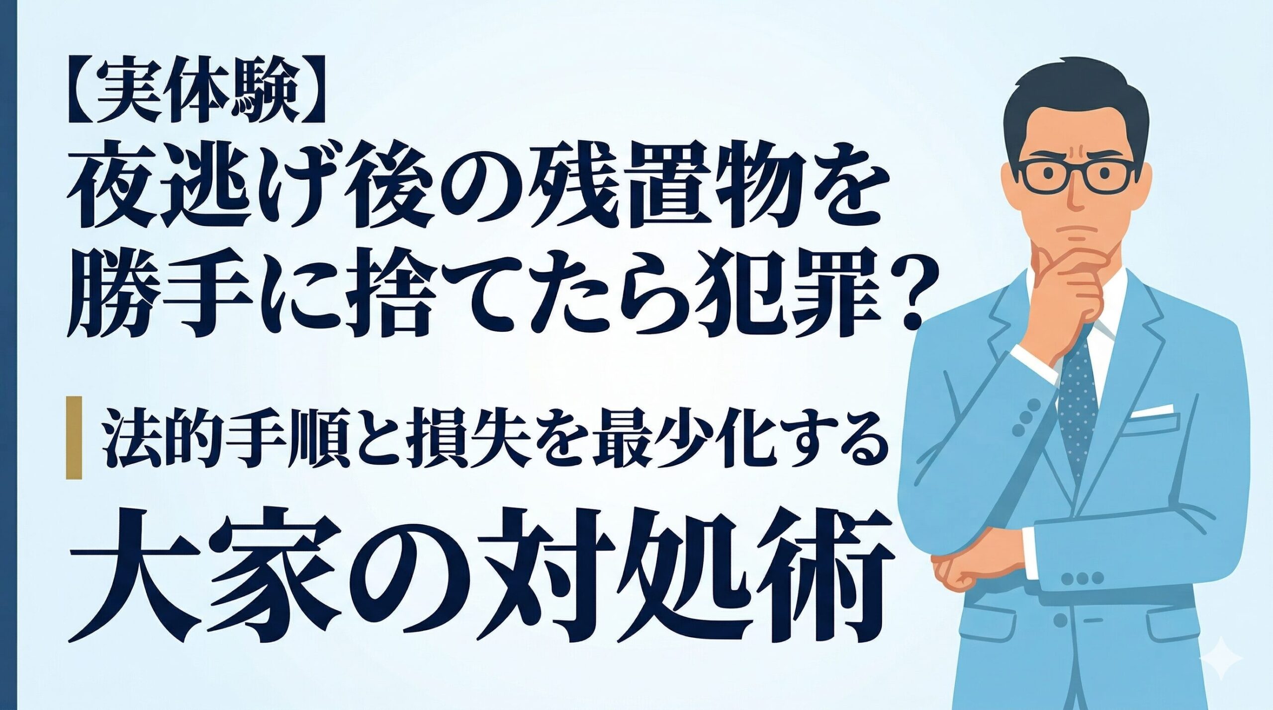 ①なぜ夜逃げ後の残置物を勝手に処分してはいけないのか、法律の根拠 ②合法的に残置物を処分するための正しい手順と現実的なコスト ③「残置物問題」を事前に予防するための入居前対策と管理会社の選び方